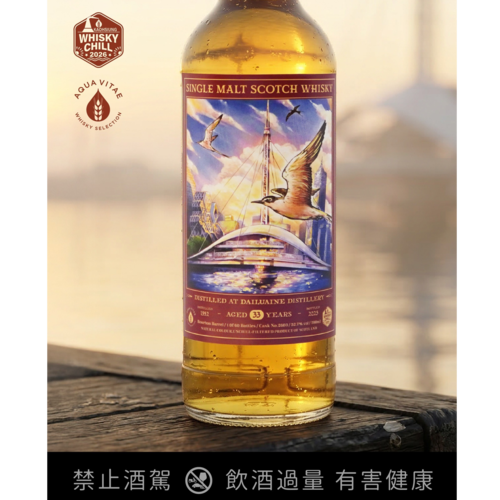 Limited Release|Dailuaine 1992 33yo Only 60 bottles unveiled at Whisky Chill Kaohsiung. Illustrator Xiaogui captures the bold Speyside style with Kaohsiung Harbor’s terns in flight, symbolizing cultural convergence. Founded in 1852, Dailuaine is famed for its meaty character—this rare single cask is history and artistry in a bottle. Tasting notes: mint, herbs, citrus, tropical fruits, cinnamon; honey, pineapple, barley, almond; finish of pineapple, citrus, pepper, cinnamon, tea.
